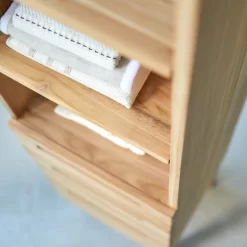 A noter que dans les salles de bain déjà meublées, cette colonne trouve parfaitement sa place : la sobriété de ses lignes et la blondeur de son bois massif lui permet toutes les associations de style.