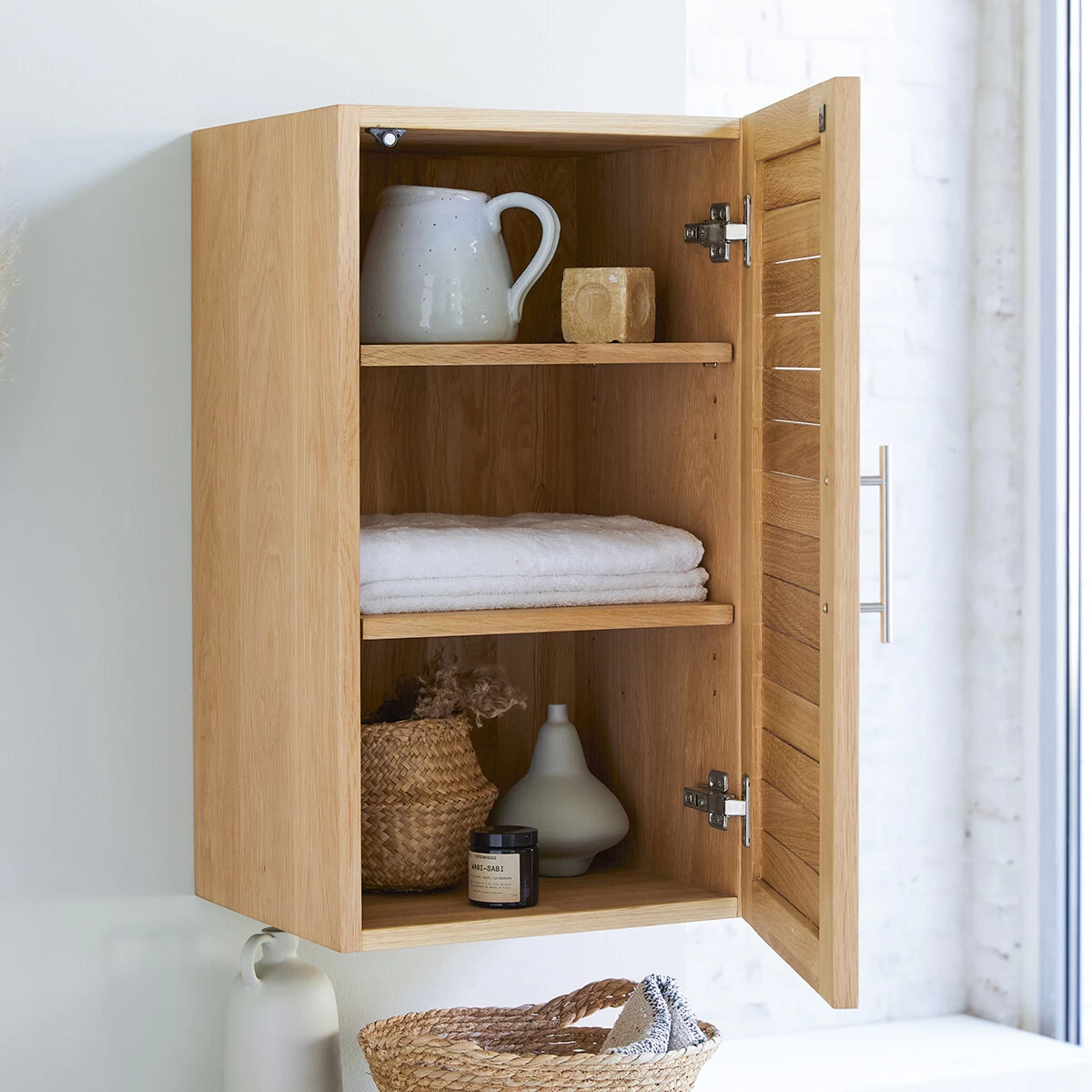 Naturel, pratique et design, le meuble haut en chêne massif Soho trouve sa place dans toutes les salles de bain, quel qu’en soit le style : idéal associé aux autres meubles de notre gamme Soho , il se marie aussi très facilement à vos meubles de salle de bain existants… la sobriété de sa ligne, la blondeur de son bois en font un élément facile à harmoniser avec toutes les déco. Il vous est proposé en duo associé au meuble bas en chêne Soho.