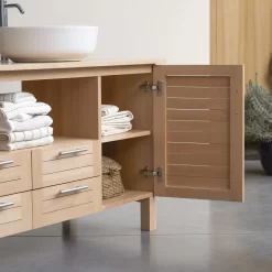 A noter, le meuble Soho est également disponible en version teck massif et en version chêne massif. Découvrez aussi nos autres meubles de la collection Soho une gamme au charme intemporel pour habiller d’élégance naturelle votre salle de bain.
