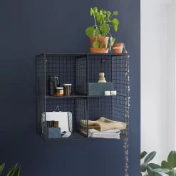 Ici, l’étagère carrée, véritable module de rangement mural, ce meuble peut également convenir posé au sol. Equipée de 4 cases dans lesquelles vous pourrez ranger vos produits de soin ou vos textiles de bain, elle est idéale pour un gain de place maximal dans votre salle de bain.
