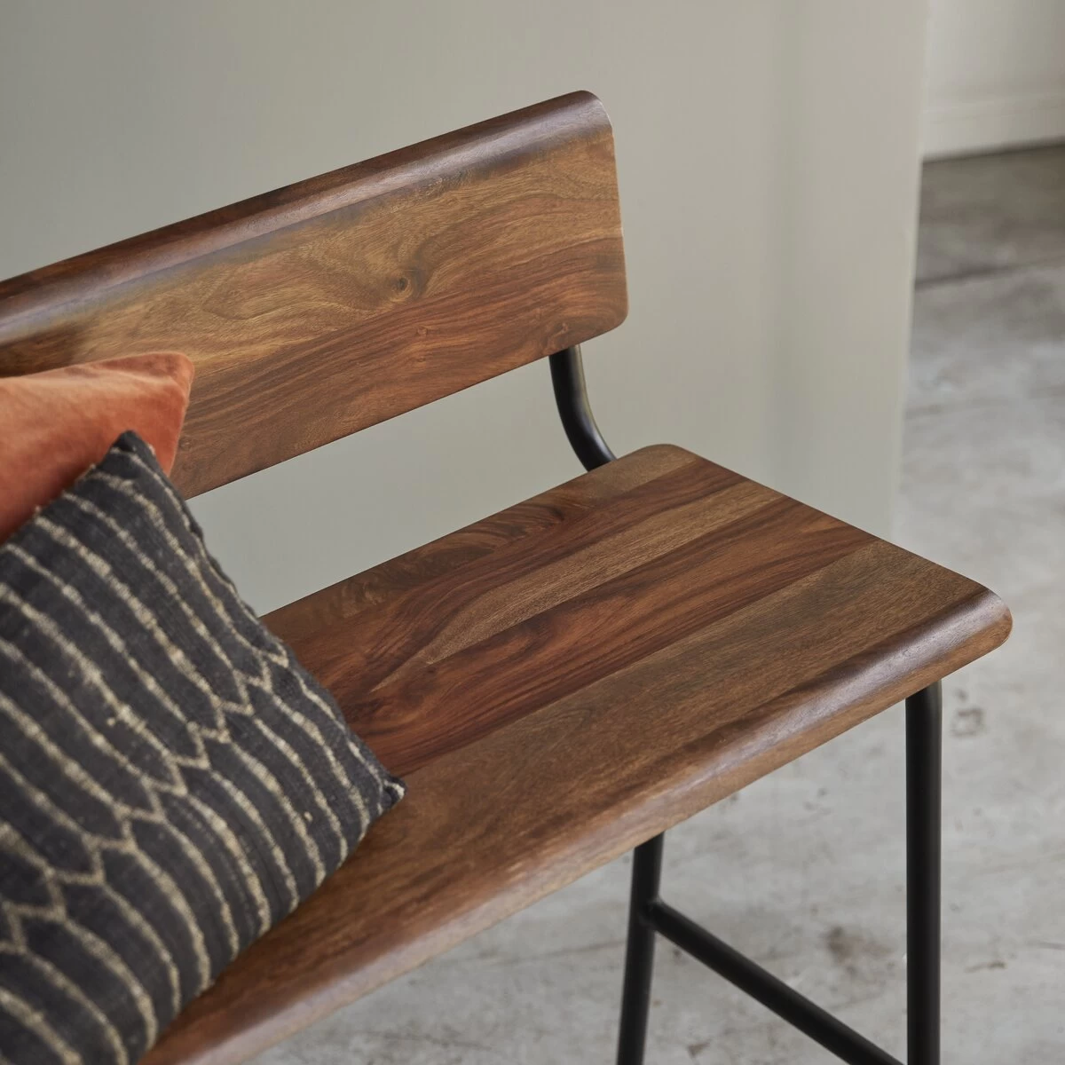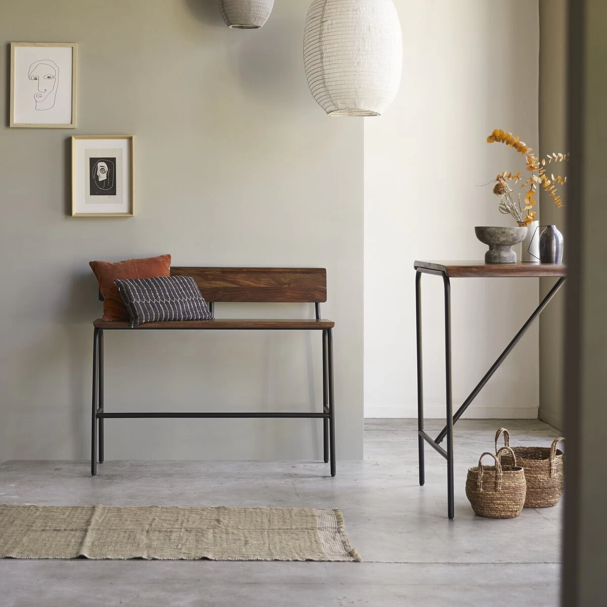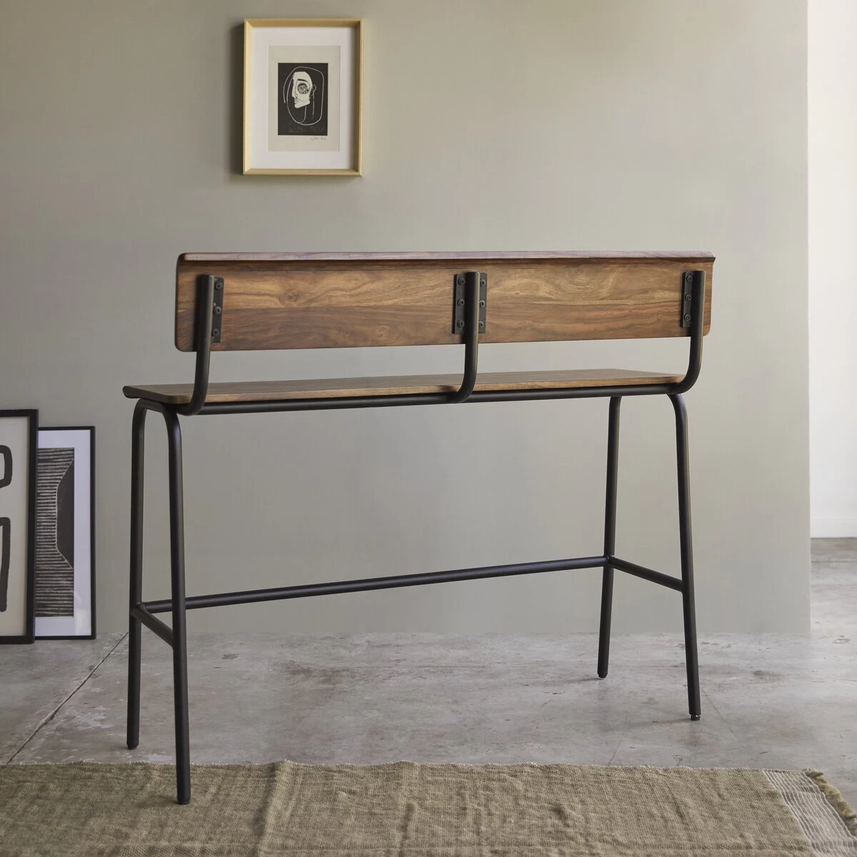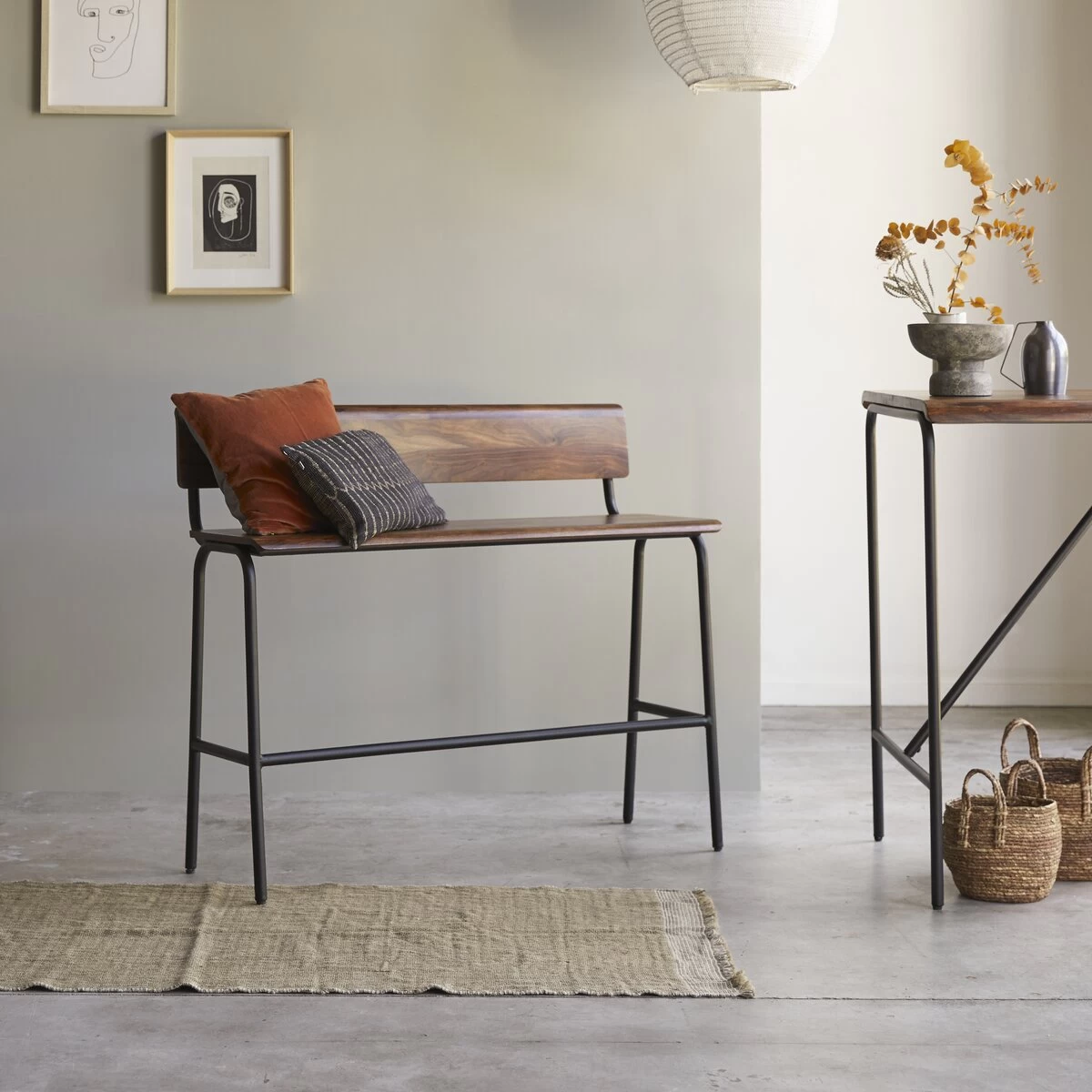 Entre banc d’atelier et souvenir de l’école élémentaire, ce banc haut en métal et palissandre massif Talia crée une belle atmosphère vintage ! On aime le contraste des matières alliant la chaleur du bois (très visuel !) à la netteté du métal.