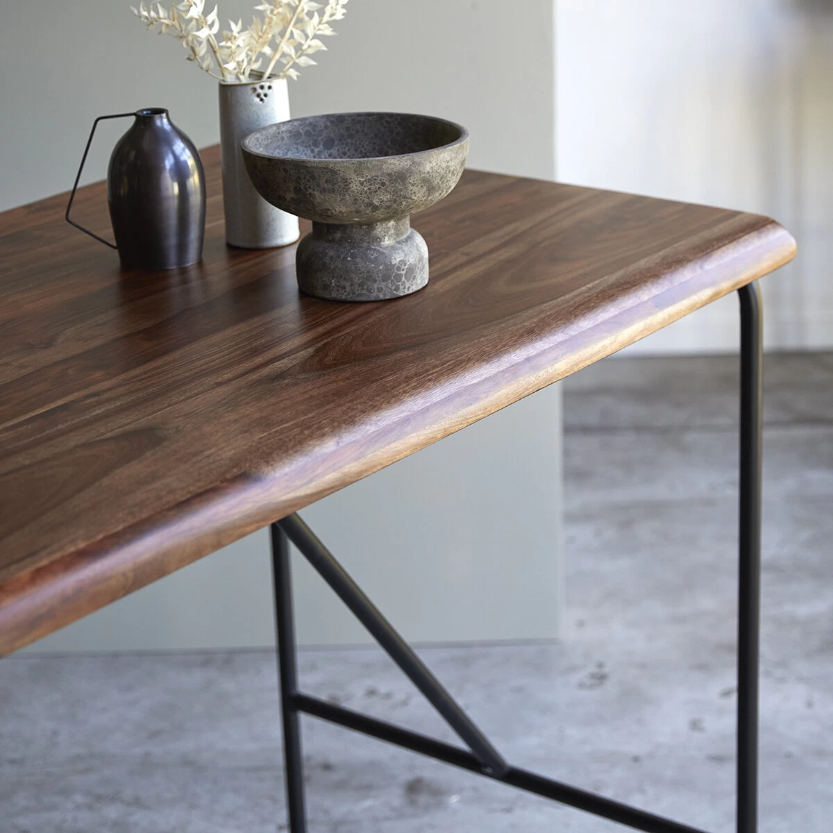 On aime sa sobriété, l’harmonie réussie des matériaux qui la composent – dont un bois aux veinures apparentes très visuelles – et sa ligne racée. Combinée au banc en métal et palissandre Talia ou aux chaises hautes en métal et palissandre Talia, elle se fait table de repas à la cuisine, sert à séparer la cuisine ouverte du reste de la pièce ou simplement compose un coin repas dans un grand séjour. On peut aussi l’imaginer en guéridon large, en écritoire… ou même en desserte dans l’entrée ! Un véritable caméléon… dont la sobriété de lignes autorise toutes les associations !