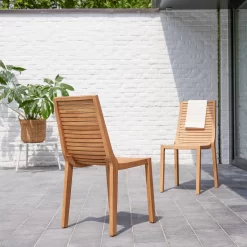Arborez votre table de jardin de notre jolie chaise en teck massif Teo, pour accueillir vos convives en beauté. Grâce à son design élégant, elle apportera à votre jardin une touche décorative moderne en toute simplicité.