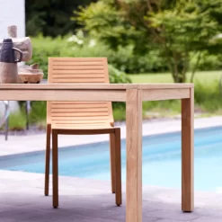 Le salon de jardin en teck massif Teo existe aussi vendu à l’unité : table seule et les chaises vendues à l’unité pour compléter votre ensemble à l’envie. A noter, qu’il se marie avec talent aux autres meubles de notre collection à l’esprit Actuel.