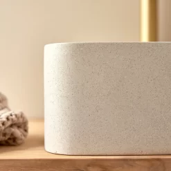 Beaucoup de charme pour la vasque carrée Thaïs en terrazzo cream ! On aime l’effet terrazzo apporté par son aspect moucheté du plus bel effet, sa matière très appréciée des designers et ses lignes adoucies. Son design épuré permet de l’associer à tout type d’ameublement : en un clin d’œil, c’est l’atmosphère de la pièce qui se métamorphose.