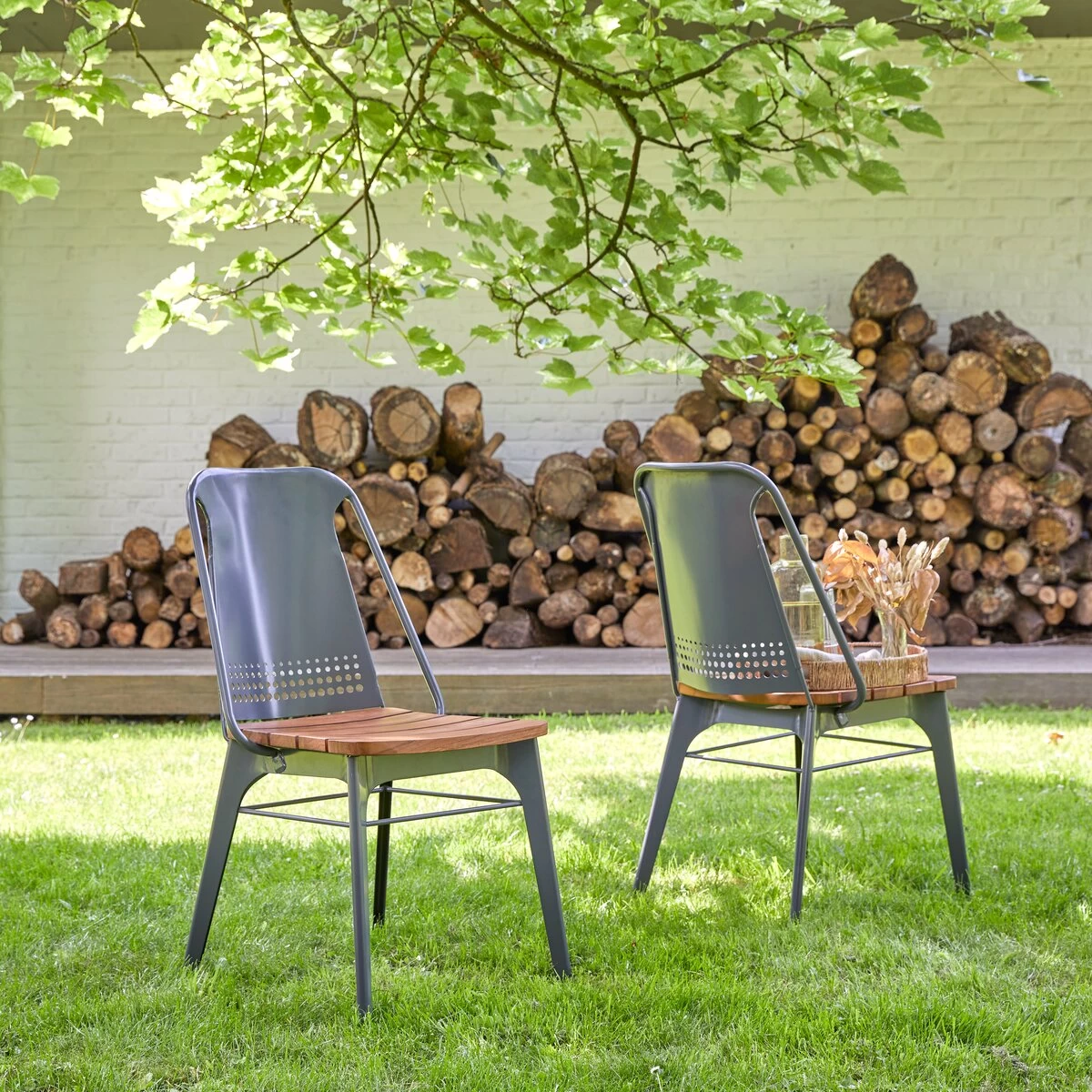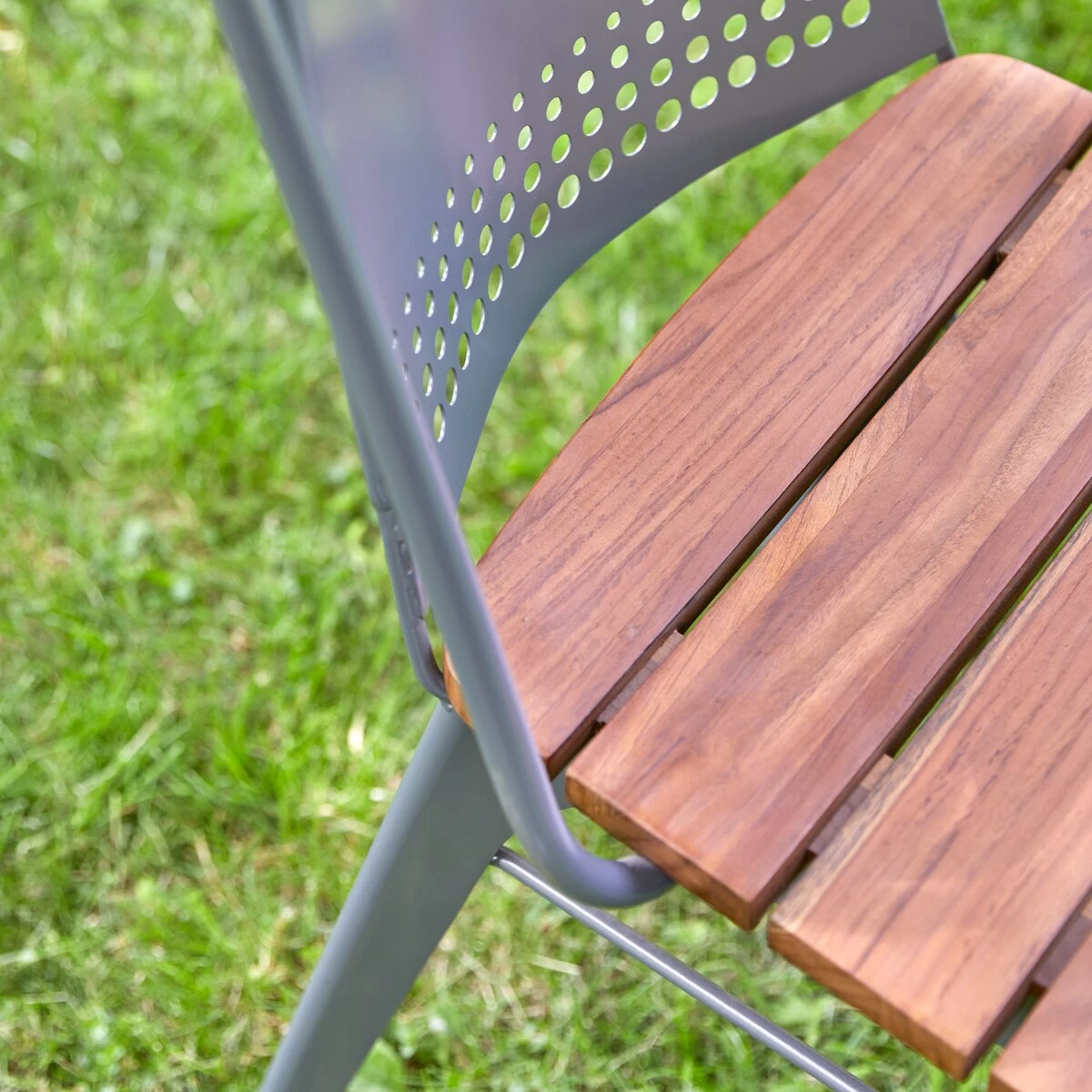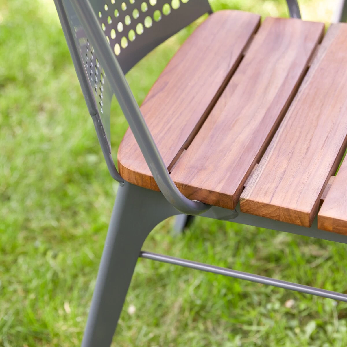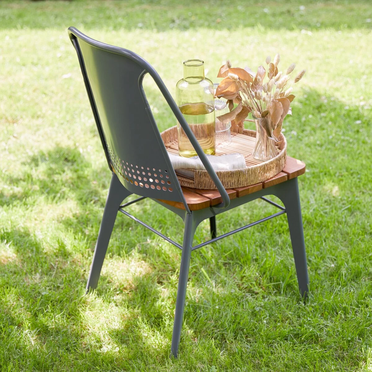 La chaise de jardin en teck massif et métal Toscane grey confère un petit air industriel à votre jardin ou votre terrasse ! Beaucoup de personnalité pour une chaise qui joue avec réussite le contraste des matières. Associée à la table en teck massif et métal Toscane, elle compose un espace convivial au charme vintage très apprécié dans les univers contemporains. Au gré des envies, vous pouvez aussi choisir de la combiner à une table de jardin en teck ou en métal ou de l’associer à une table que vous possédez déjà. Sa sobriété lui permet de nombreuses associations !