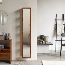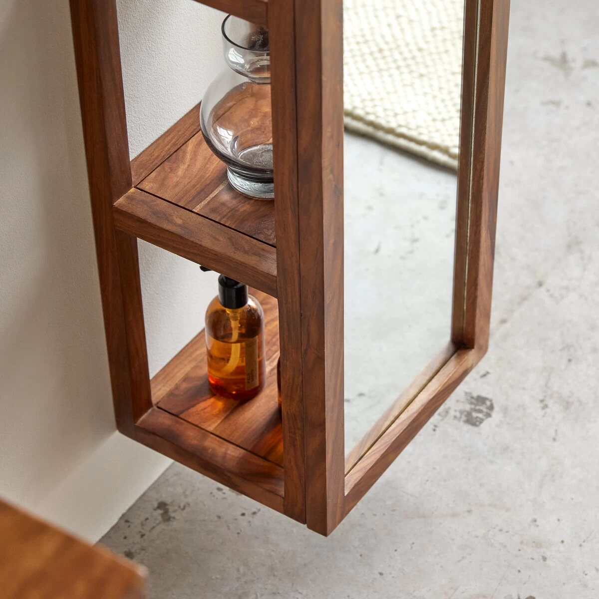 La colonne en palissandre massif Twig, une 2 en 1 qui conjugue design contemporain et charme intemporel : en un seul espace, vous disposez d’un grand miroir et de 6 niches de rangement. On aime le bois dense et aux veines apparentes du plus bel effet et la finition vernie qui protège des éclaboussures. Idéale dans la salle de bain pour compléter notre collection en palissandre massif Kwarto, cette colonne trouve aussi naturellement sa place dans d’autres pièces de la maison, comme une chambre, le dressing ou le séjour.