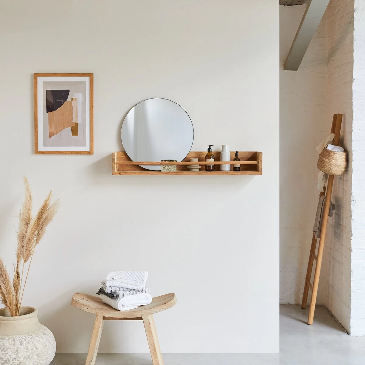 Un beau design pour une étagère en teck massif certifié FSC® Ugo 100 qui reçoit flacons et autres éléments de toilette… mais aussi petites plantes, miroirs ou objets de décoration.