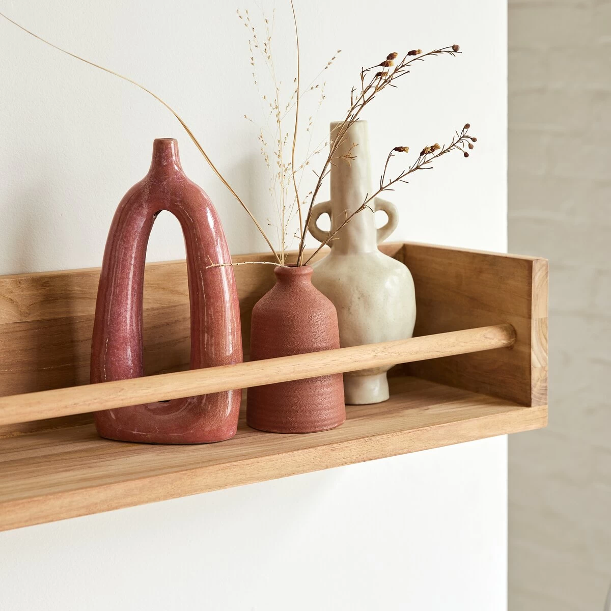 L’étagère murale en teck massif certifié FSC® Ugo 100 reçoit avec une élégance toute naturelle livres, petites plantes (comme des succulentes par exemple) et objets de déco tendance.