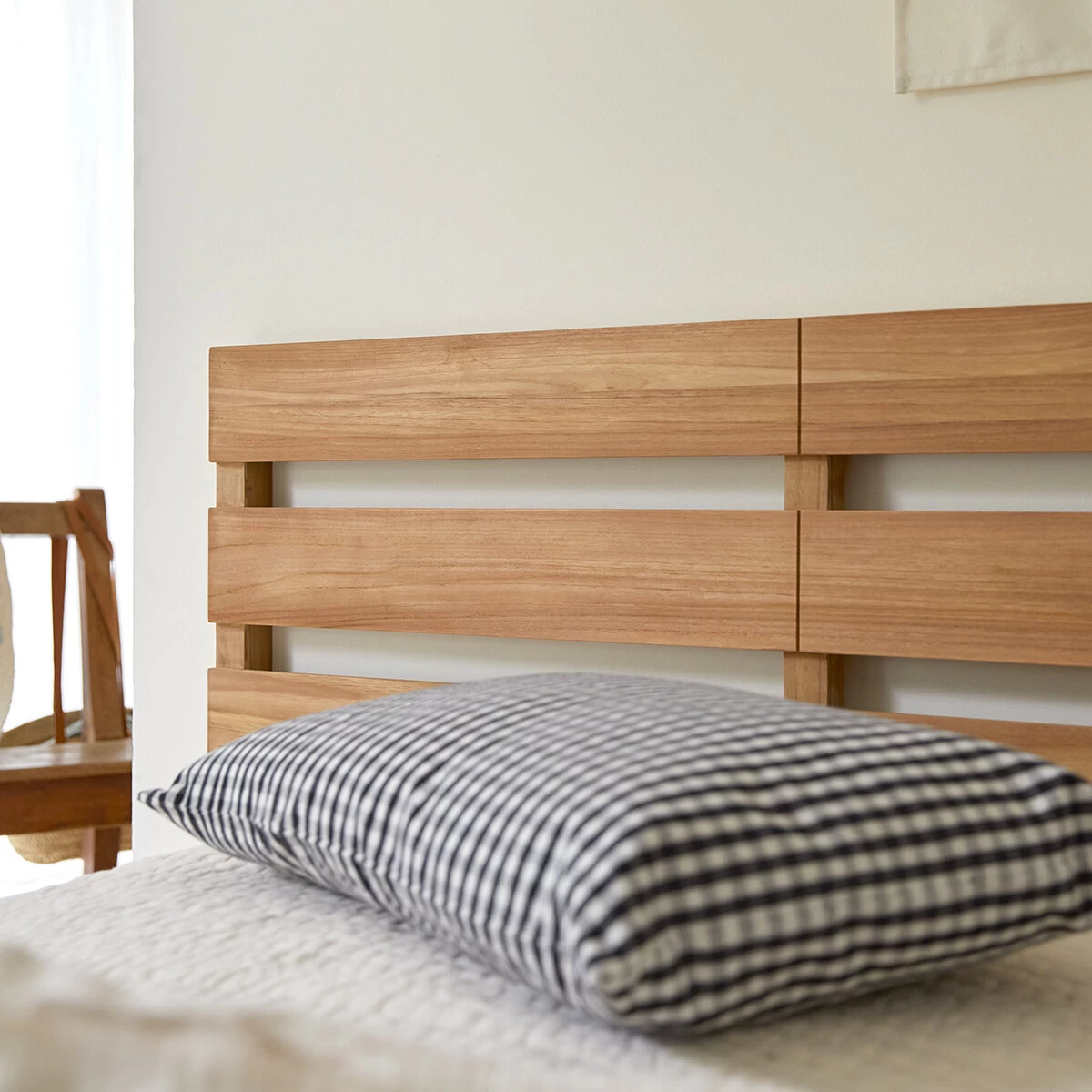 Travaillée dans un bois certifié FSC®, c’est-à-dire qu’il est issu de forêts gérées de manière responsable, la tête de lit en teck massif Urbain existe aussi avec des étagères. Toutes deux se marient à la perfection avec notre gamme de meubles à l’esprit Naturel. Pour les plus grands, nous vous la proposons aussi en version 270 cm.