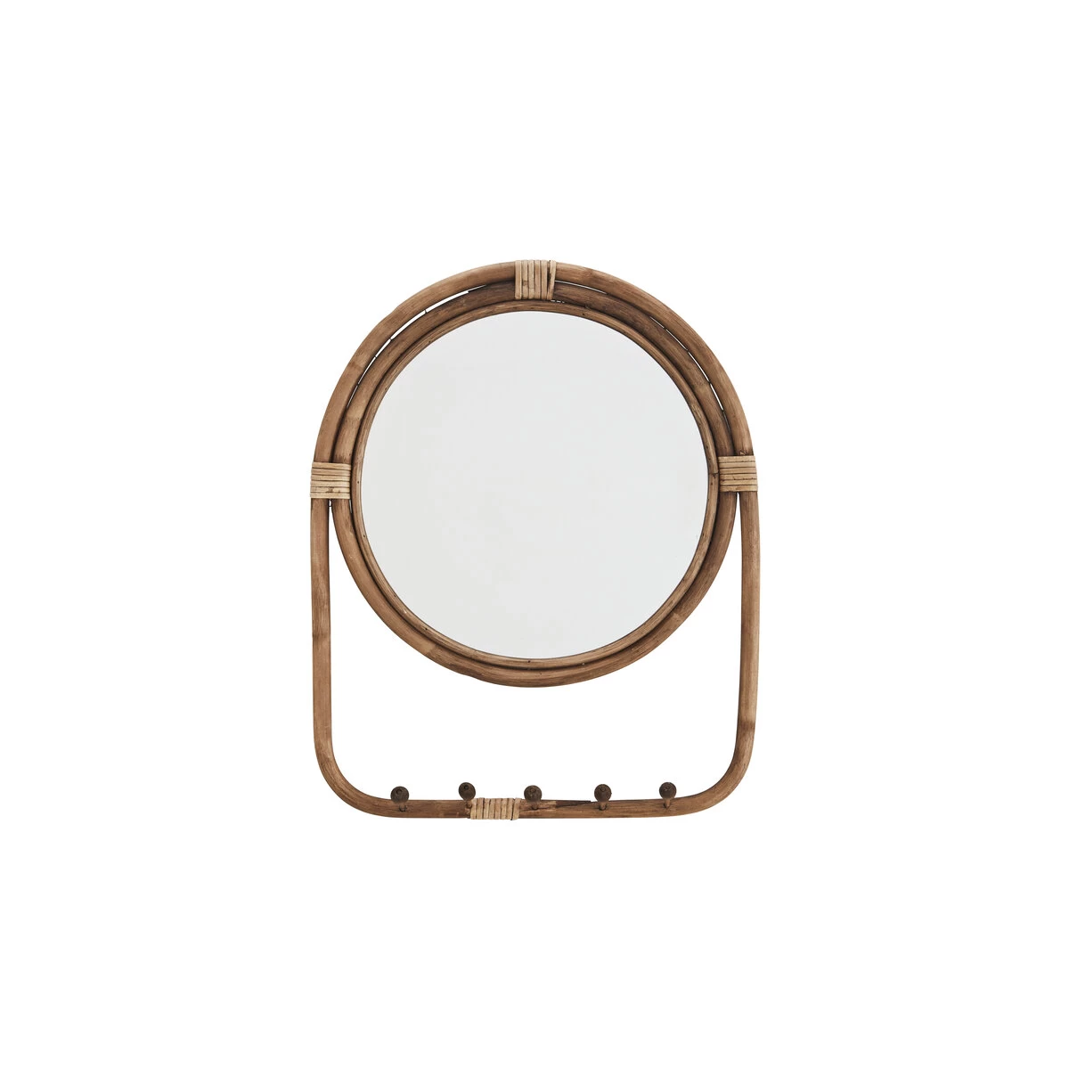 Charme exotique allié à un usage double fonction pour le miroir Virgil signé Madam Stoltz. Doté de 5 crochets façon patères, il est, au gré des envies ou des besoins, porte-manteaux dans une entrée, porte-serviettes dans la salle de bain, porte-foulards et bonnets dans la chambre ou le couloir… On aime le naturel du rotin, désormais très en vogue dans les intérieurs contemporains et la rondeur des lignes.