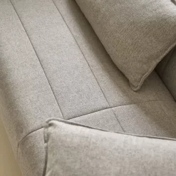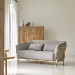 Le canapé Yas en chêne massif et tissu gris peut être complété d’un ou deux fauteuils Yas pour vous concocter un espace à l’atmosphère à la fois contemporaine et… intemporelle : la simplicité de la ligne et l’élégance du coloris lui permettent de traverser avec réussite le temps. Il vous est aussi proposé en 3 places.