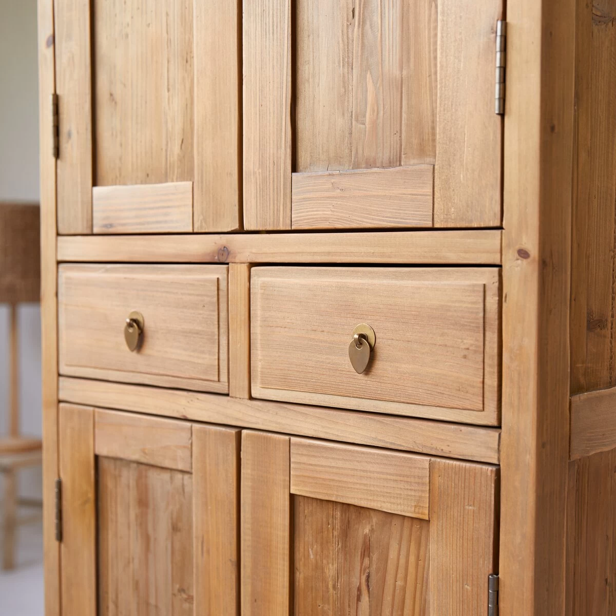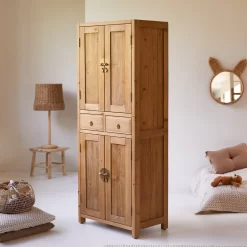 L’inspiration exotique de l’armoire en pin massif recyclé Yuki Naturel fait voyager sans bouger de sa chambre : on explore le monde, on se sent en Afrique ou en Asie, on découvre de nouveaux horizons et on s’imagine ami des lionceaux… le rêve est au pouvoir, tout est permis. Dans cette armoire spacieuse, on organise ses vêtements, son linge de lit, ses jouets… et on peut aussi y cacher ses précieux trésors.