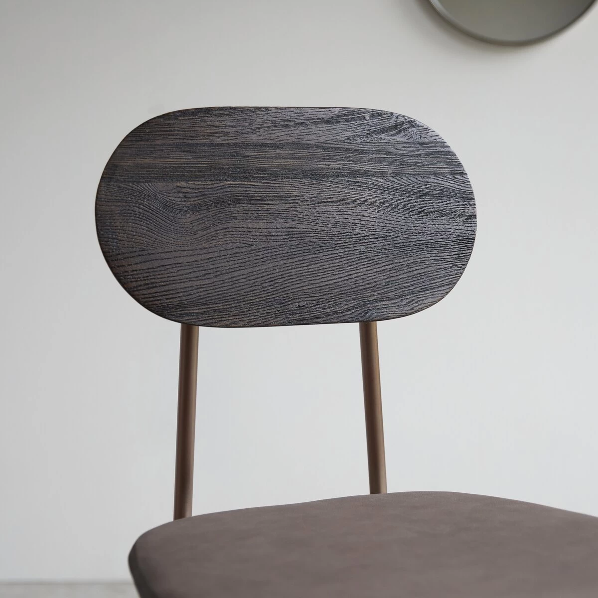 On aime la qualité premium des matériaux qui la composent : le dossier en chêne massif foncé s’harmonise à la perfection au cuir chocolat qui habille l’assise… le cuivre brossé du piétement vient compléter avec personnalité l’ensemble.